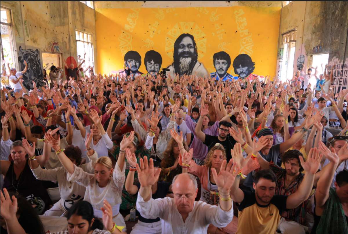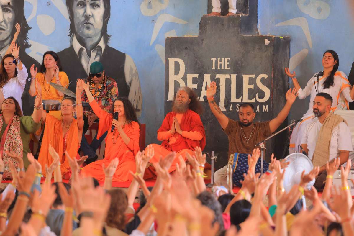RISHIKESH, INDIA — One of the most special highlights of the day was a pilgrimage to the historic Maharishi Mahesh Yogi Ashram, also known as the Beatles Ashram. Participants of the International Yoga Festival at Parmarth Niketan, Rishikesh gathered in this iconic spiritual space—where the The Beatles once practiced meditation—to sing, meditate and celebrate together in a joyful atmosphere of global harmony. Renowned kirtan artist Radhika Das, acclaimed percussionist Padmashri Drums Shivamani, and celebrated singer Runa Rizvii Shivamani, along with festival presenters and participants, filled the sacred grounds with devotional music, chants and shared celebration.