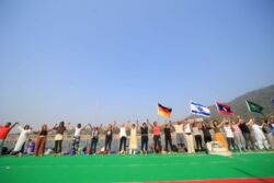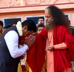 RISHIKESH: Hon’ble union AYUSH Minister Shri Sarbananda Sonowalji, after interacting with all of the participants and presenters of the International Yoga Festival last evening and enjoying his visit and overnight stay at Parmarth Niketan Ashram, departed this morning after performing the purnahuti of the sacred world peace and health Yagya Ceremony with Pujya Swami Chidanand Saraswati, President of Parmarth Niketan Ashram and Pujya Sadhvi Bhagawati Saraswati, Director of international Yoga Festival alongside eminent Yoga Presenters and Teachers.