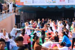 Fourth day was another beautiful day filled with Yoga Sessions from as early as 4:30 am from Ashtanga Yoga, Kundalini Sadhana, to Naad Yoga, sessions on Ahar, Yoga Therapy for Scoliosis, Detox & renew – Secrets to Anti-Ageing and more, with sacred yagya, evening Ganga Aarti and Special music performance for the International music of peace by Gil Ron Shama, from Israel till 9pm filled the participants’ day with diverse offerings.
