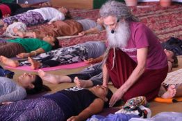 After a light breakfast, Janet Attwood beautifully encouraged her students to undo their limiting beliefs, while Tommy Rosen offered paths for a breakthrough to the real selves of the capacity crowd in his long-awaited class. Dr. Indu Sharma, a dedicated teacher and practitioner at Parmarth for over 10 years, also led a traditional Hatha Yogasana, while Stewart Gilchrist offered remedies to remove the obstacles to yoga in our lifetimes and Dana Flynn conducted a vibrant and dynamic Soul Sweat class that left participants, well…soul-filled!