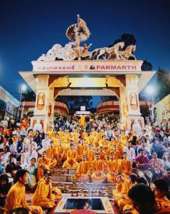 1 MARCH 2020 RISHIKESH INDIA: The evening of 1 March was glorious along the holy banks of Mother Ganga, as over 900 participants from 56 countries joined Pujya Swamiji and Sadhviji in welcoming the Hon’ble Minister of State for Culture and Tourism for the Government of India, Shri Prahlad Singhji, and the Hon’ble Speaker of the Uttarakhand Legislative Assembly, Shri Prem Chand Aggarwal, for the inauguration of the 31st Annual Internatioinal Yoga Festival, a week of enlightenment, upliftment and connection to themselves, each other and all of Creation.