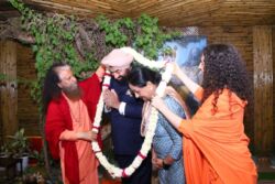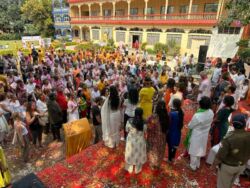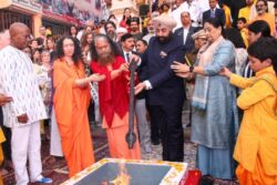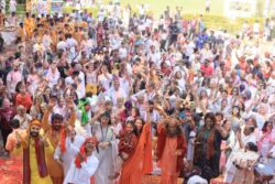 RISHIKESH: Drum beats vibrated through the sacred Yoga Gardens as world famous percussionist Drums Sivamani and Soulful Sufi Singer Runa Rizvi sang Holi songs as delegates from more than 90 nations danced in ecstasy as HH Pujya Swami Chidanand Saraswatiji, President of Parmarth Niketan, and Pujya Sadhvi Bhagawati Saraswatiji, Director of International Yoga Festival applied pure sandalwood paste (chandan) as blessed tilak on the foreheads of all the participants, showering flowers of love and peace during the opening and first day of the highly anticipated 35th annual International Yoga Festival at Parmarth Niketan, Rishikesh being organised with the support of the Incredible India, Ministry of Tourism, in association with the Ministry of Culture and Ministry of AYUSH, Government of India.