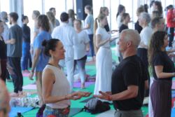 Participants also immersed themselves in profound teachings, such as “Yogasana 1: Vinyasa Krama – The Forgotten Language of Sequencing” by Stewart Gilchrist, founder of the East London School of Yoga; “Ancient Secrets to the Healing Diet” by Dr. Krushna Naram; “The Kundalini Express” by Tommy Rosen; and “Enlivening Shakti” with Anand Mehrotra, who developed the Sattva Yoga style and founded the Sattva Yoga Academy. Participants practiced ancient Himalayan pranayama and kriyas, then danced ecstatically, while Mehrotra encouraged yogis to “Move like you’ve never moved before!”