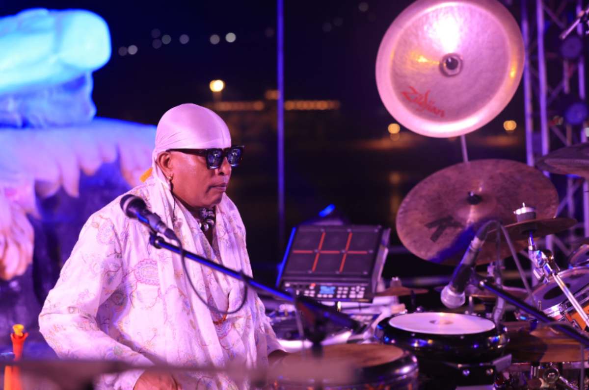 संध्या के समय पवित्र गंगाजी के तट पर ड्रम वादक शिवमणि जी और रूना रिजवी शिवमणि जी के जीवंत व मंत्रमुग्ध कर देने वाले संगीत ने वातावरण को दिव्यता से युक्त कर दिया।